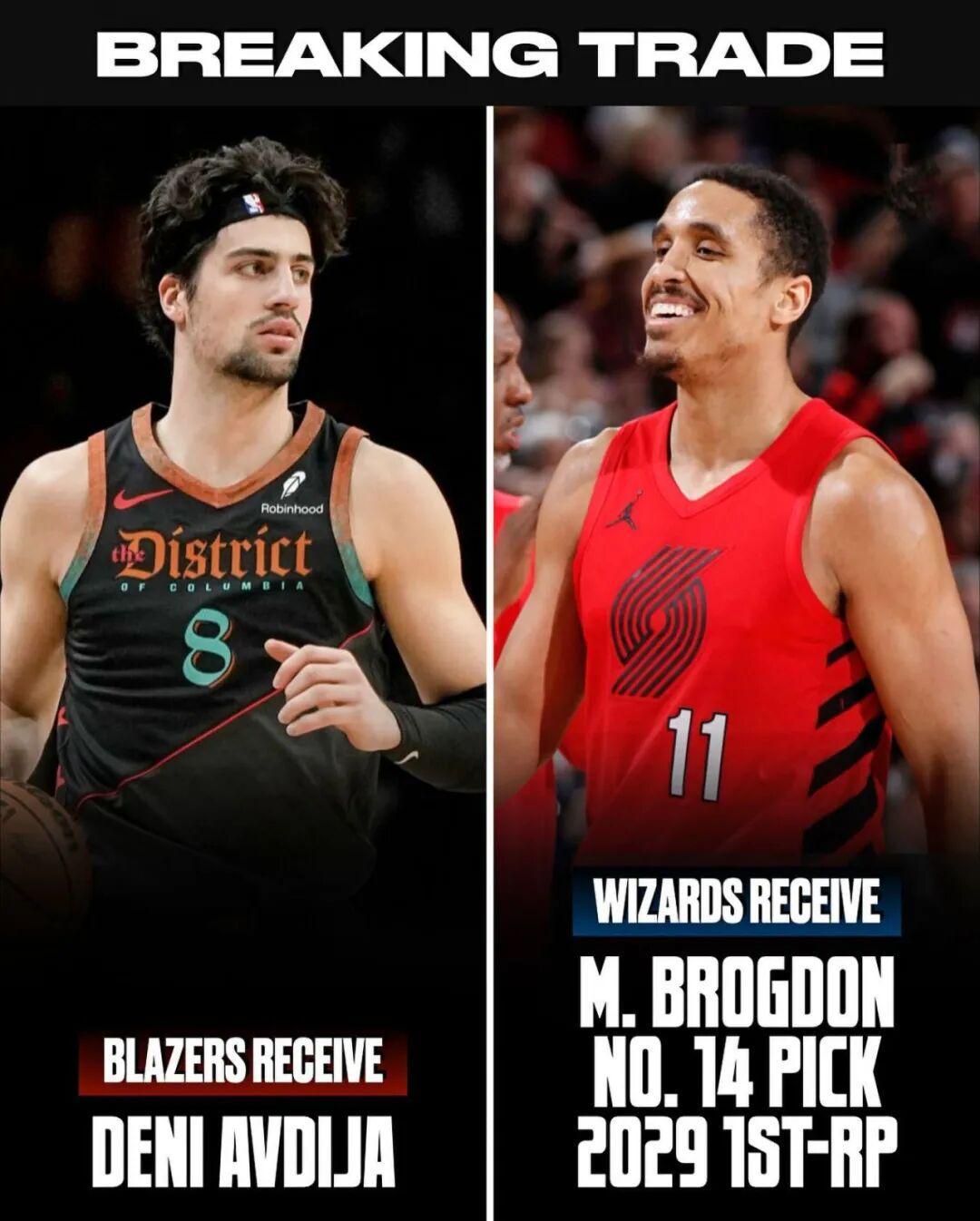 在当时看,开拓者的目标无疑是重建,然而2024年夏天,开拓者却非常意外大胆地主动出击,送出布罗格登+2首轮+2次轮,从奇才得到了阿夫迪亚。